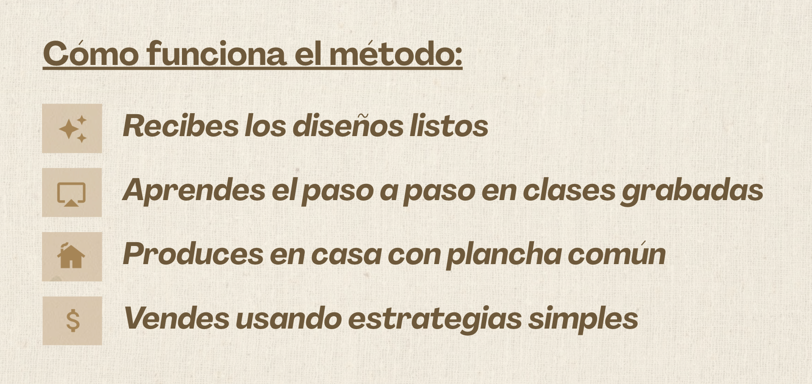 No. El método fue creado para funcionar con lo que ya tienes en casa, como una plancha común y materiales básicos. No necesitas invertir en máquinas costosas para comenzar.