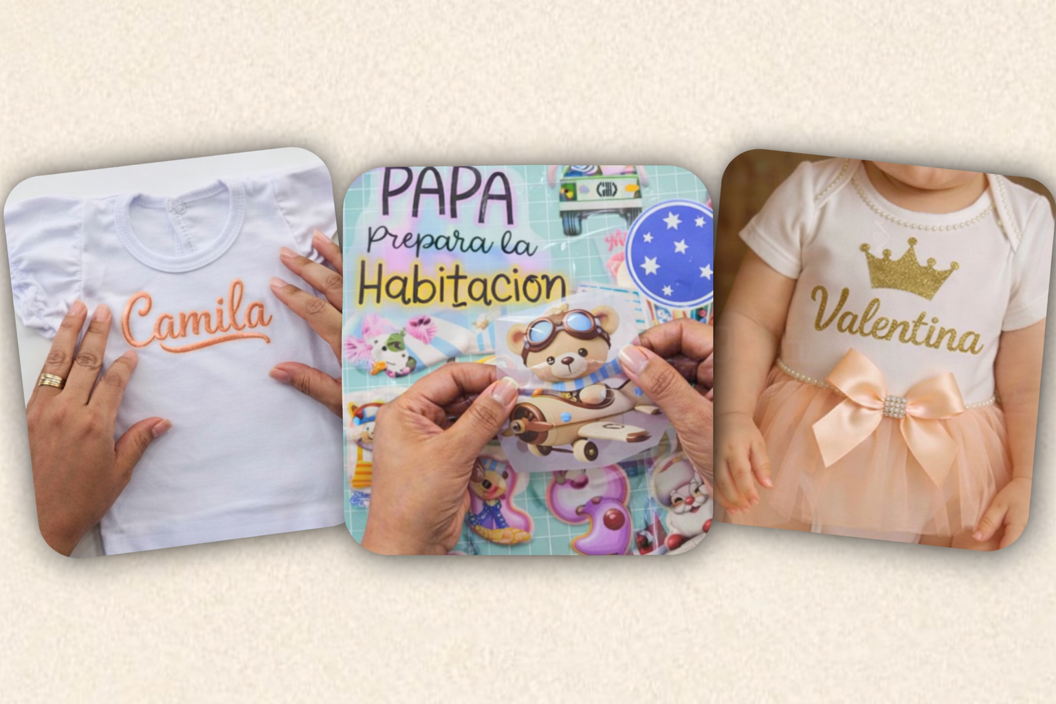 Aprende a estampar camisetas, bodys, bolsas, kits familiares, uniformes y mucho más.